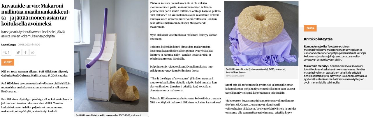 - 8/2023 Kaleva, kritiikki soolonäyttelystäni Galleria5:ssa (tässä linkki ei-tilaajille)